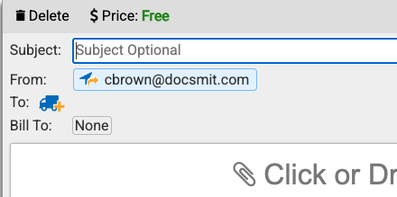 When you are composing your message in the Docsmit UI, you will see a little truck icon next to "To:"
